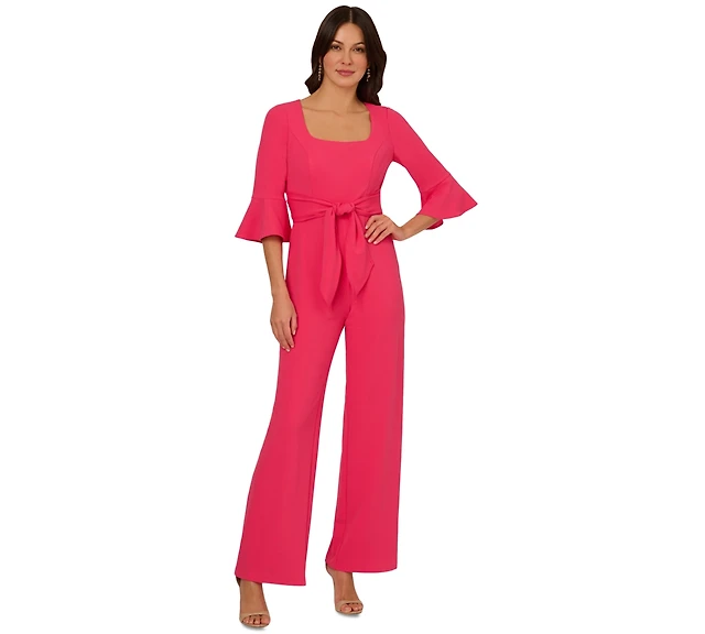 Adrianna Papell Women's Tie-Front Bell-Sleeve Knit Crepe Jumpsuit