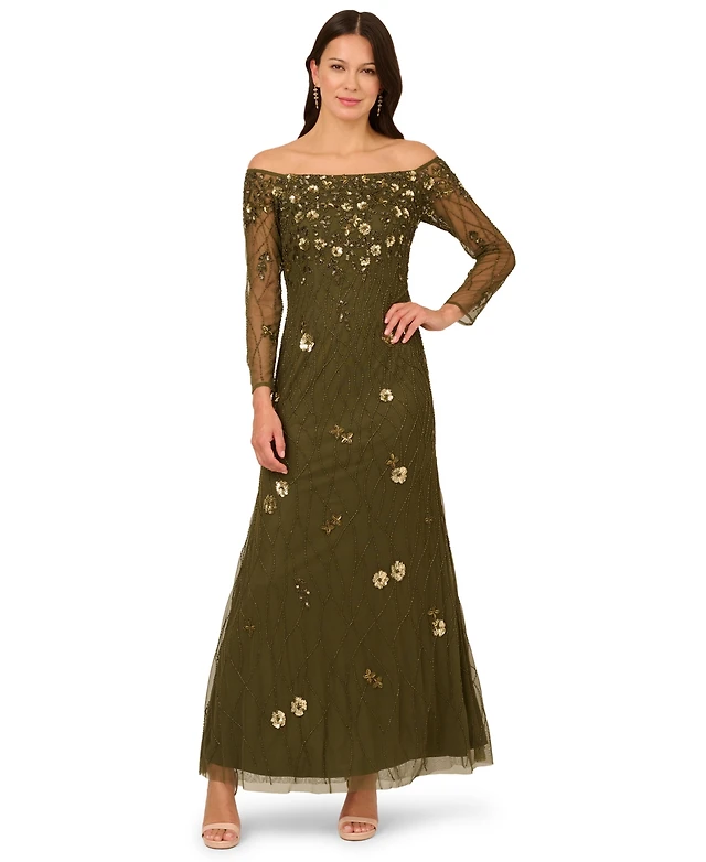 Adrianna Papell Women's Off-The-Shoulder Bead Dress