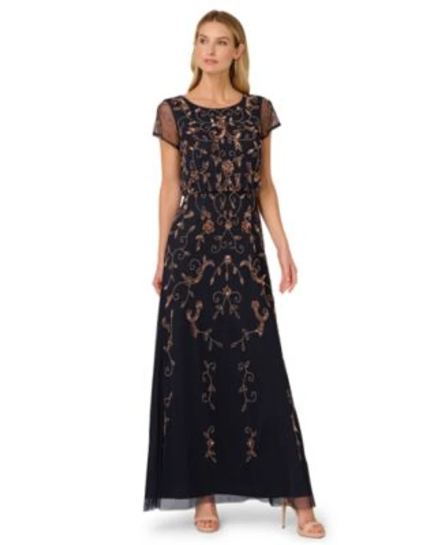 Adrianna Papell Womens Boat Neck Beaded Blouson Gown 0p 20