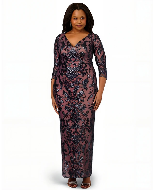 Adrianna Papell Women's Metallic Floral-Print Column Gown