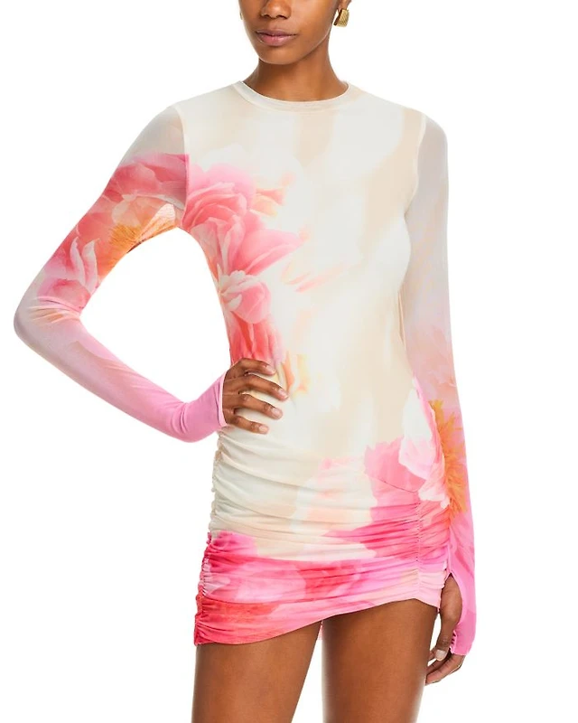 Fay Printed Ruched Off The Shoulder Mini Dress