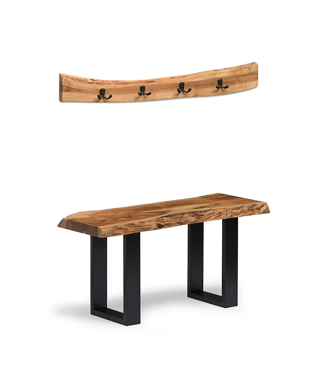 Alaterre Furniture Alpine Natural Live Edge 36" Bench with Coat Hook Set