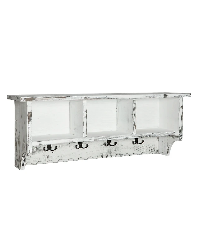 Country Cottage Coat Hook with Storage Cubbies, Blue Antique Finish