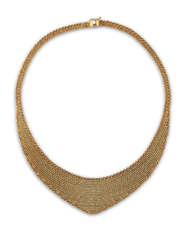 14K Yellow Gold Multi Strand Mesh Collar Necklace, 18"