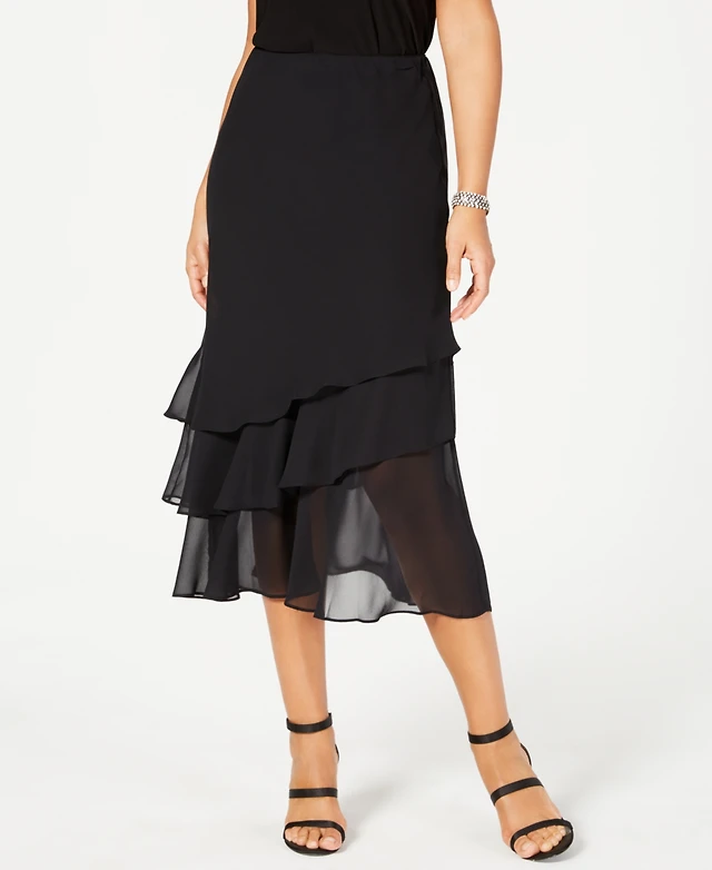 Alex Evenings Women's Tiered Satin-Hem Chiffon Skirt