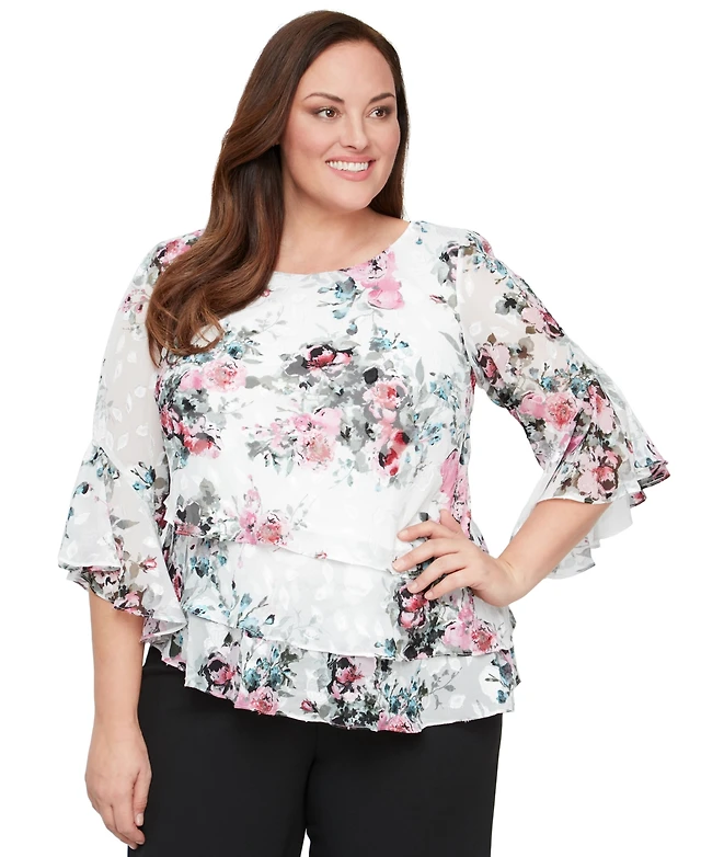 Alex Evenings Plus Printed Tiered Top