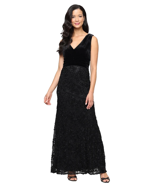 Alex Evenings Women's Velvet Off-The-Shoulder Evening Gown