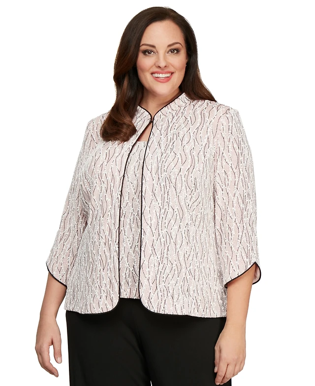 Alex Evenings Plus Glitter-Print Jacket & Top Set