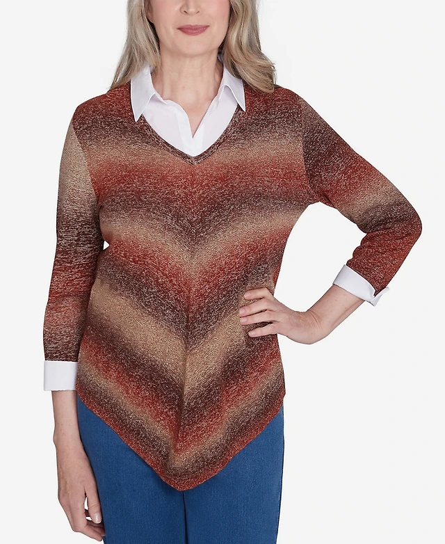 Alfred Dunner Classic Chevron Ombre Woven Sweater