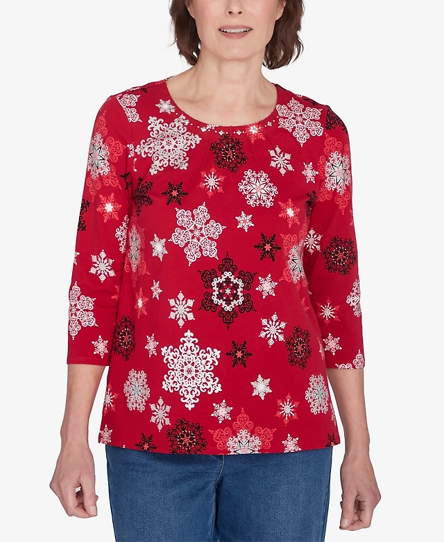 Alfred Dunner Petite Classic Snowflake Infused Top