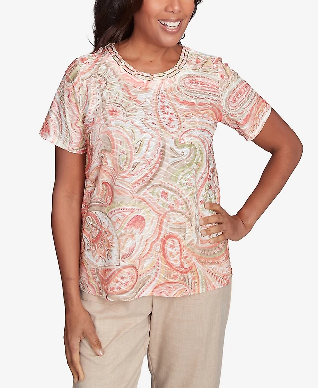 Alfred Dunner Women's Catalina Island Double-Knotted Paisley Top