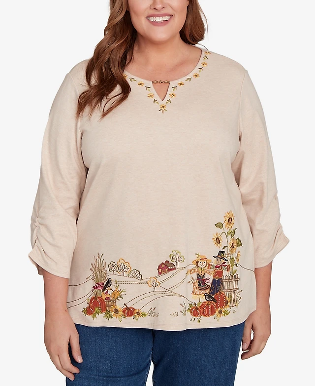 Alfred Dunner Plus Size Classic Farm Landscape Harvest Keyhole Neck Top