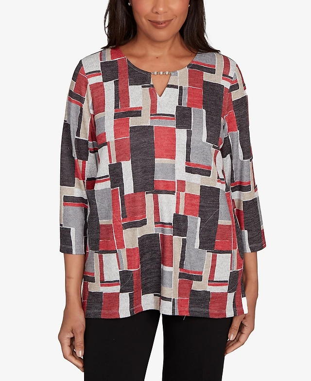 Alfred Dunner Women's Classic Stained Glass Square Neck Top