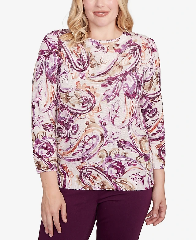 Alfred Dunner Petite Urban Legend Shimmer Paisley Crew Neck Sweater