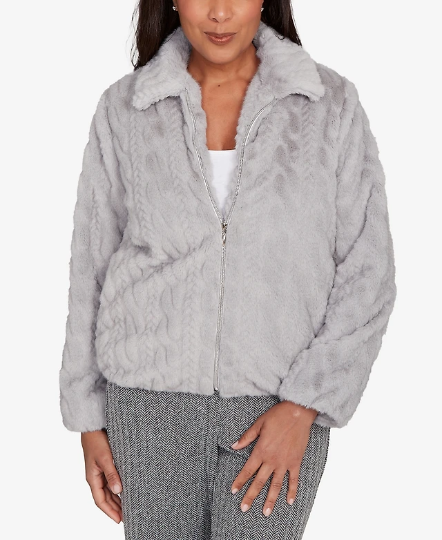 Alfred Dunner Petite Jet Setter Sculpted Faux Fur Zip Up Jacket