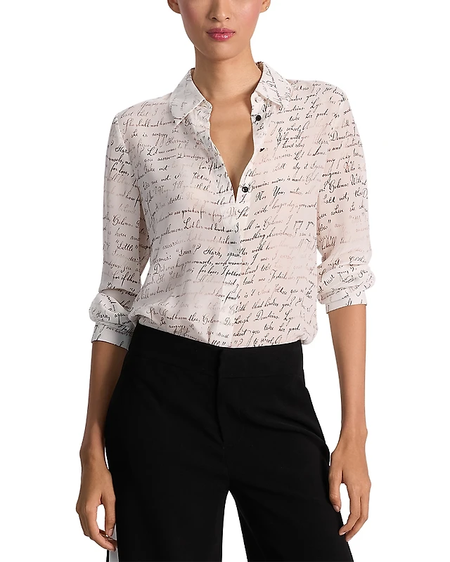Alice and Olivia Delaina Printed Mesh Long Sleeve Top