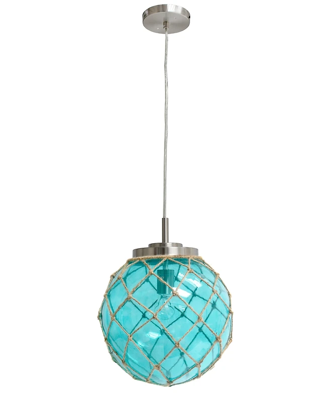 Elegant Designs Buoy Netted Brushed Nickel Coastal Ocean Sea Glass Pendant with Natural Rope