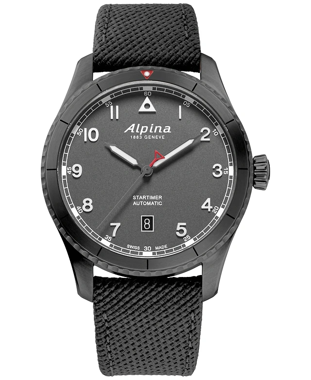 Alpina Men's Swiss Automatic Startimer Black Leather Strap Watch 41mm