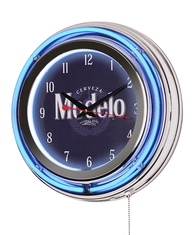 American Art Decor Modelo Retro Round Neon Wall Analog Clock with Pull Chain, 14.5"