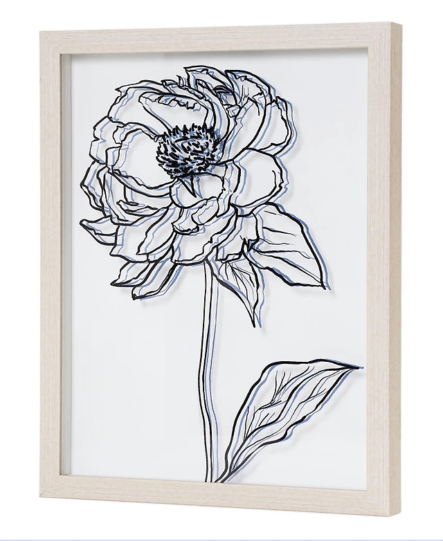 American Art Decor Peony Sketch Printed Glass Wall Art, 12" x 15"
