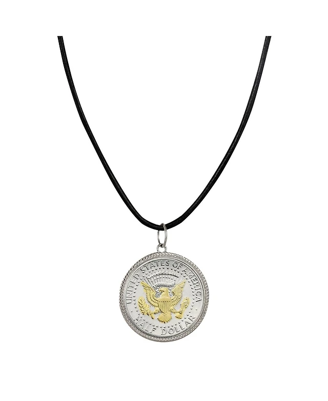 American Coin Treasures 16363 Presidential Seal 2 Tone Jfk Half Dollar Pendant with Leather Cord for Men