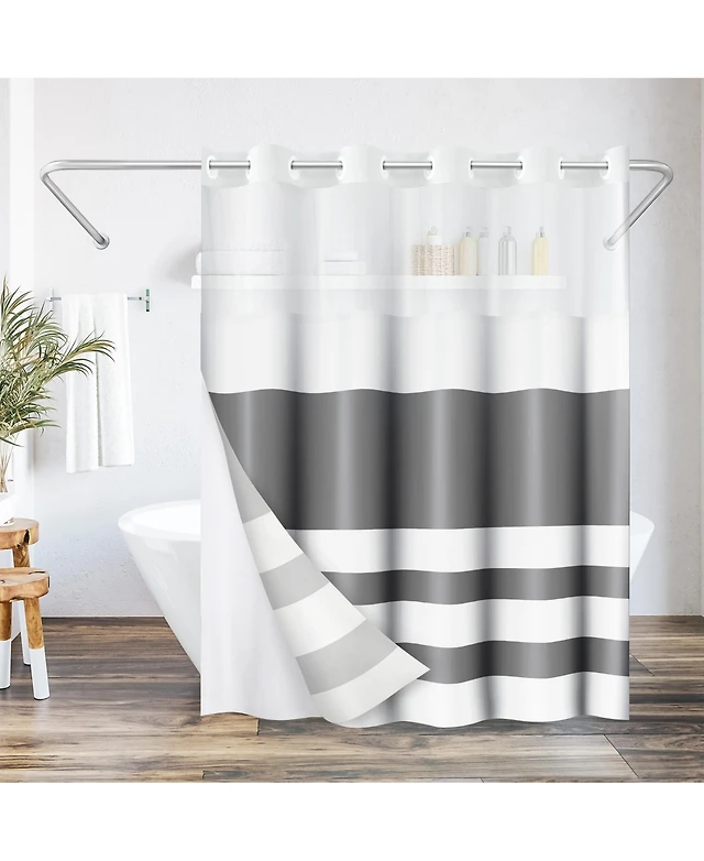Americanflat 72x75 Hookless Shower Curtain - Grey Lines Shower Curtain with Sheer Panel, Snap-In Liner, and Grommets - 100% Polyester