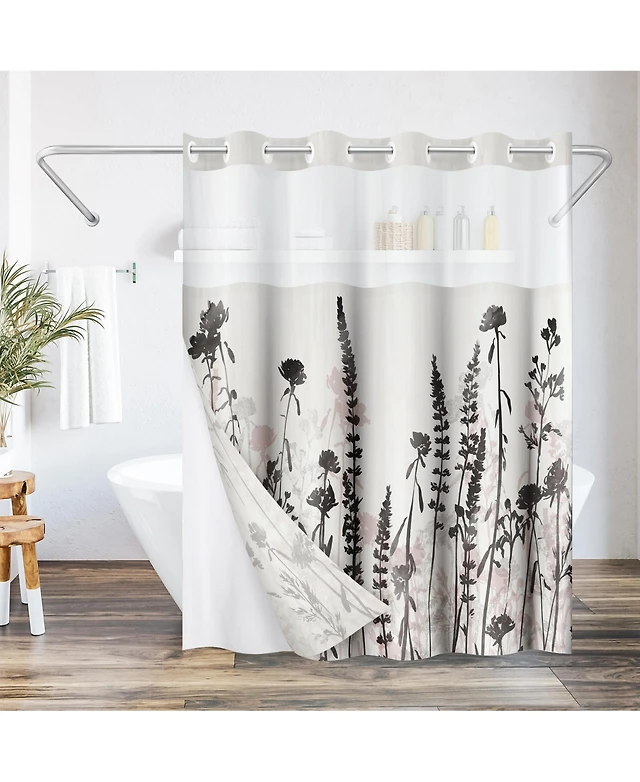 Americanflat 72x75 Hookless Shower Curtain - Floral and Shower Curtain with Sheer Panel, Snap-In Liner, and Grommets
