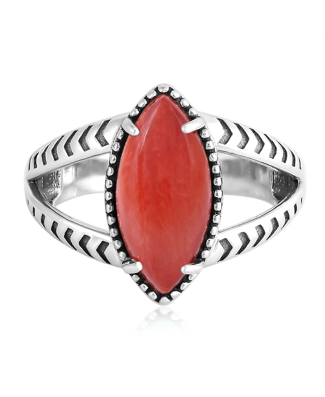 American West Jewelry Sterling Silver Orange Spiny Oyster 3-Stone Ring
