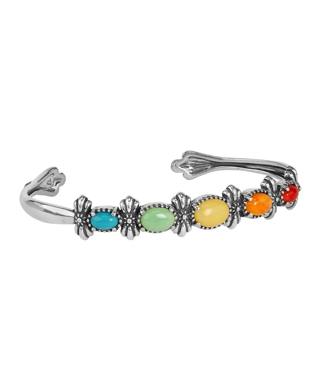 American West Jewelry Sterling Multi Color 5-Stone Cuff Bracelet Size Small