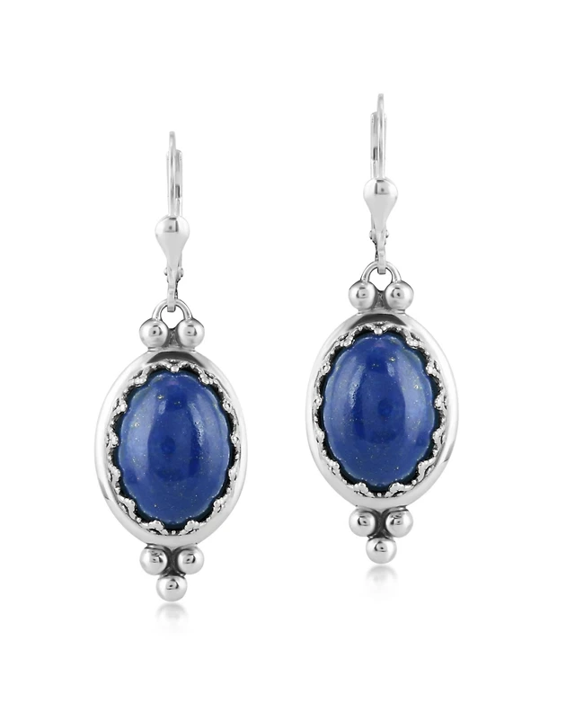 American West Jewelry Sterling Silver Lapis Fritz Casuse Oval Gemstone Naja Earrings