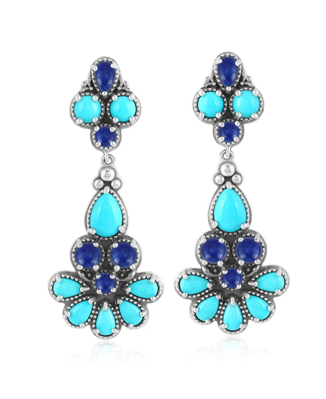American West Jewelry Sterling Silver Blue Turquoise and Lapis Chandelier Earrings