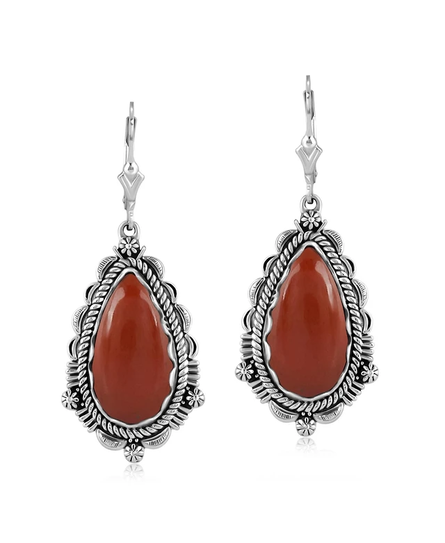 American West Jewelry Sterling Silver Red Onyx Arrowhead Lever Back Earrings