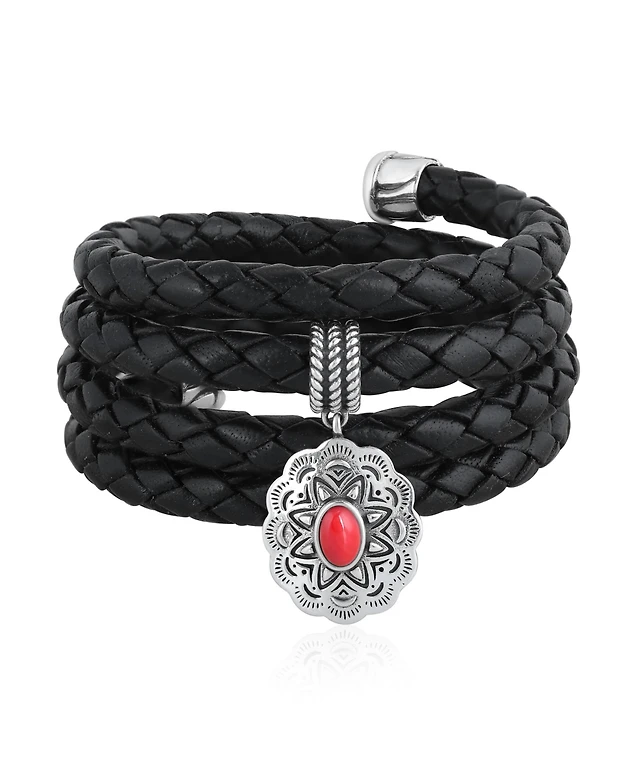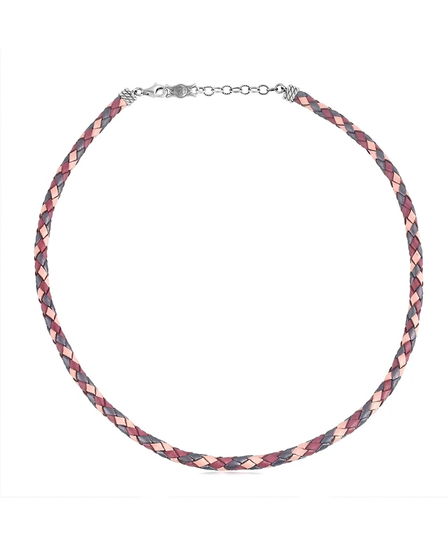 American West Jewelry Sterling Silver Multi-Color Braided Pink, Maroon and Berry Leather Necklace, 20 to 22 Inches