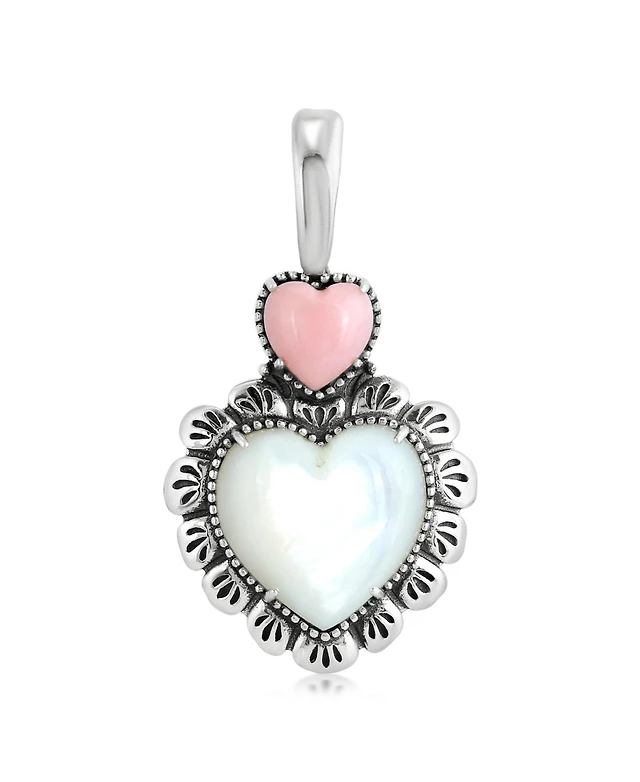 American West Jewelry Sterling Silver White Mother of Pearl Pink Opal Concha Heart Pendant Enhancer