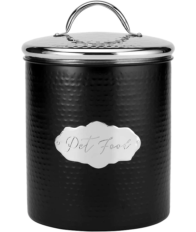 Amici Pet Cavalier Large Metal Canister Treats Jar, 118 oz., Black w/ Silver Lid