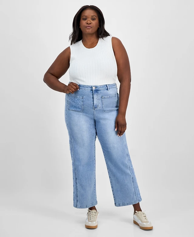 And Now This Trendy Plus High-Rise Wide-Leg Cutwork Jeans, Exclusively at Macy's
