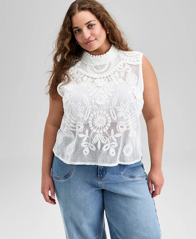 And Now This Trendy Plus Cotton Crochet Mock Neck Sleeveless Top, Exclusively at Macy's
