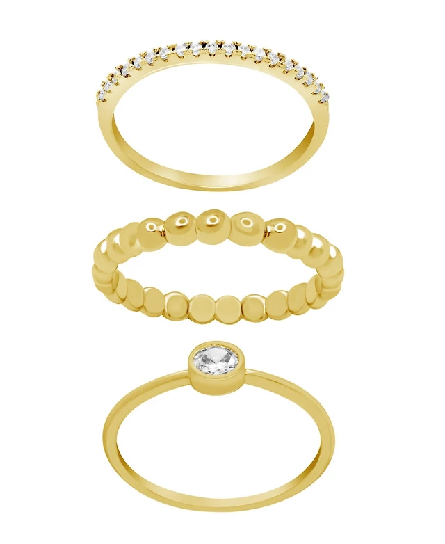 and Now This Gold Plated 3-Piece Clear Cubic Zirconia Band Ring Set