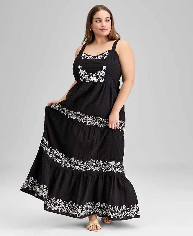 And Now This Trendy Plus Cotton Swiss Dot Embroidered Maxi Dress, Exclusively at Macy's