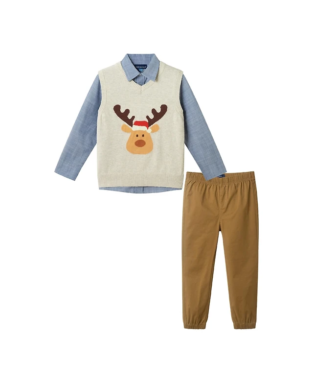 Andy & Evan Toddler/Child Boys Winter Moose Sweater Vest Set