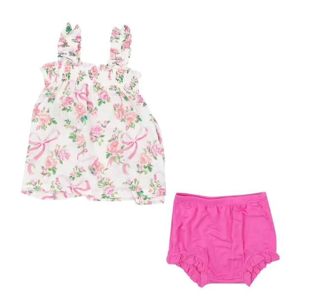 Angel Dear Girls' Ruffled Strap Smocked Top & Diaper Cover Set
