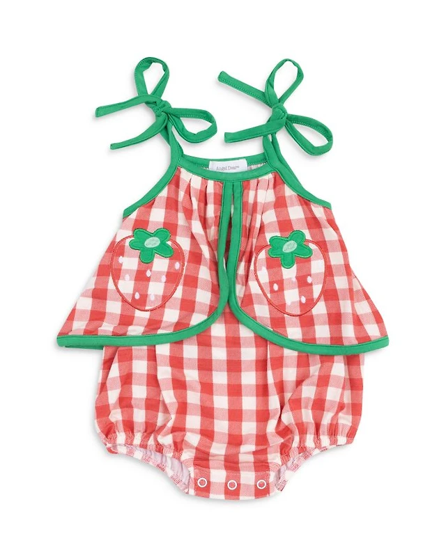 Girls' Strawberry Gingham Swing Front Sunsuit With Appliqués - Baby