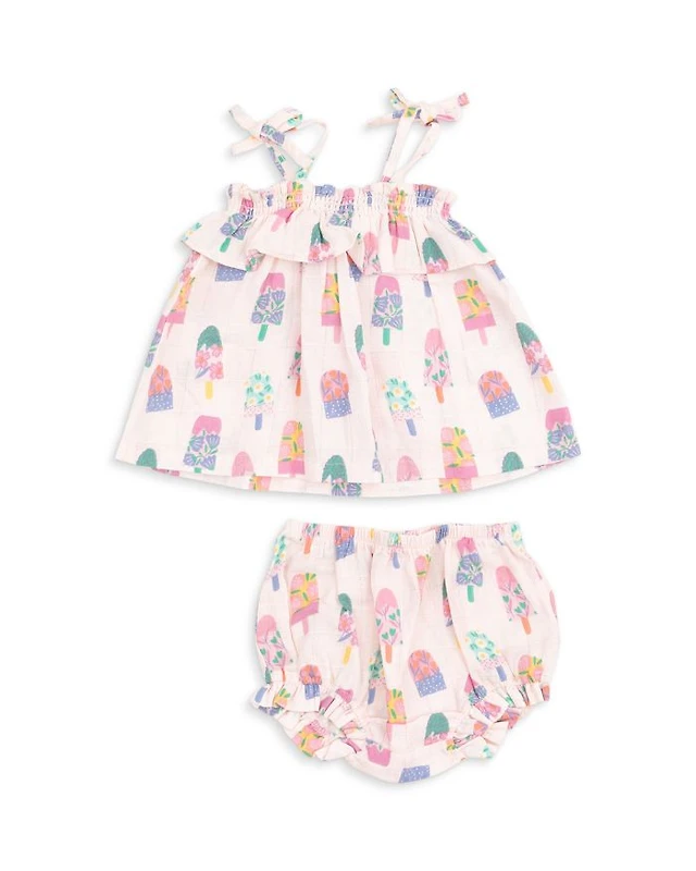 Girls' Sweet Peach Ruffled Strap Smocked Top & Diaper Cover Set - Baby