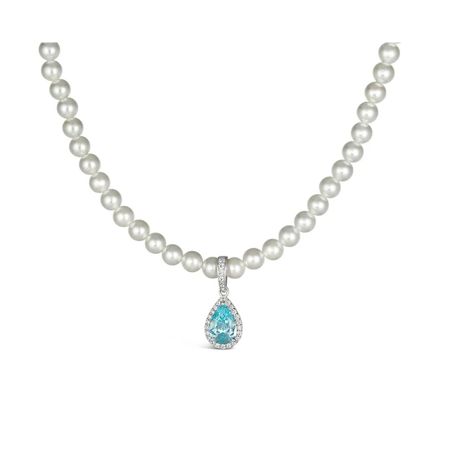 Anna Zuckerman Princess Di Aquamarine Pearl Necklace