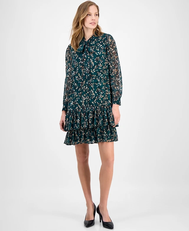 Anne Klein Women's Floral Print Blouson-Sleeve Shirtdress