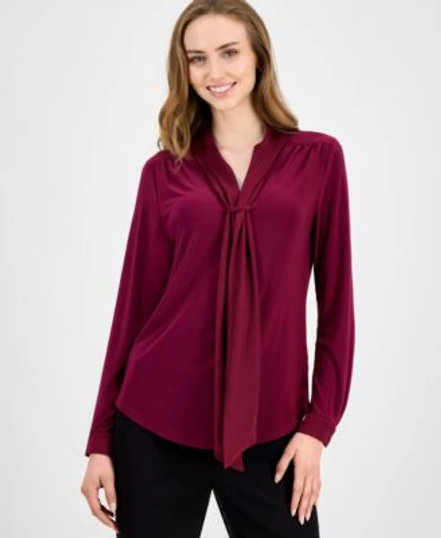 Anne Klein Womens Tie Neck Long Sleeve Blouse P Xxs Xxl