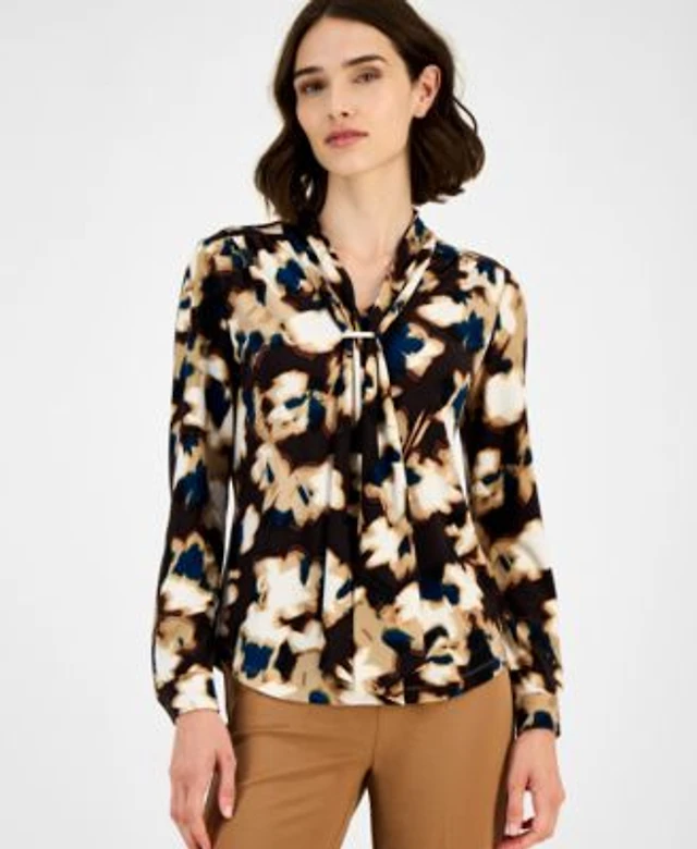 Anne Klein Womens Printed V Neck Long Sleeve Blouse P Xxs 3x