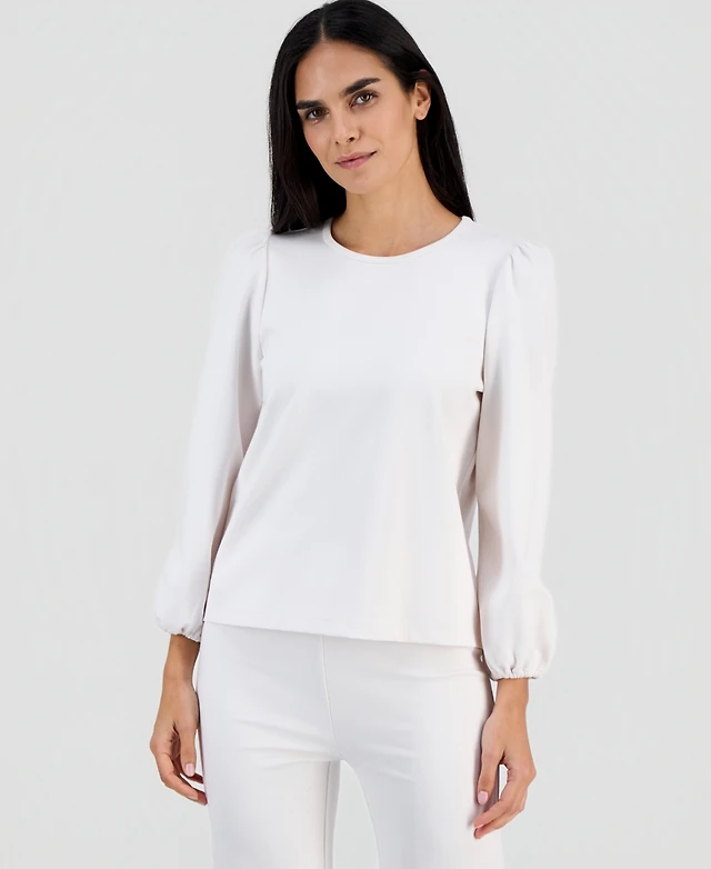 Ak Anne Klein Petite Puff-Sleeve Crewneck Sweater