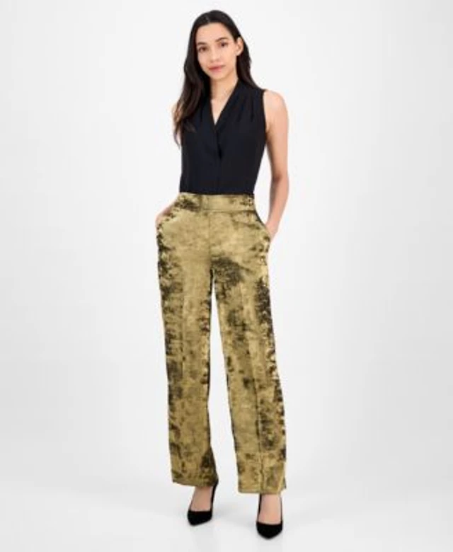 Anne Klein Womens Metallic Crepe High Rise Wide Leg Pants P Xxs 3x