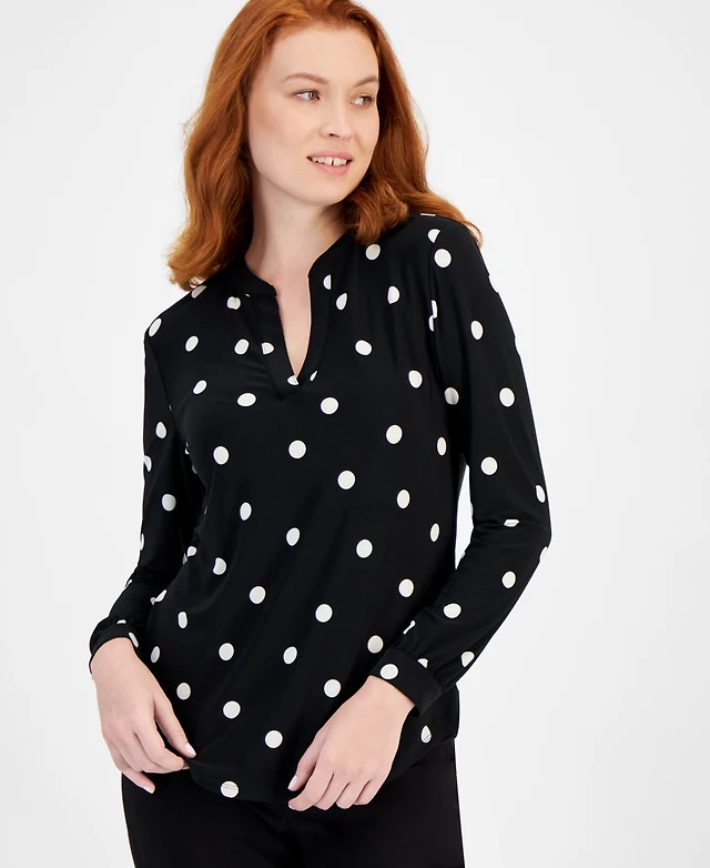 Anne Klein Women's Split-Neck Pearl-Dot Top